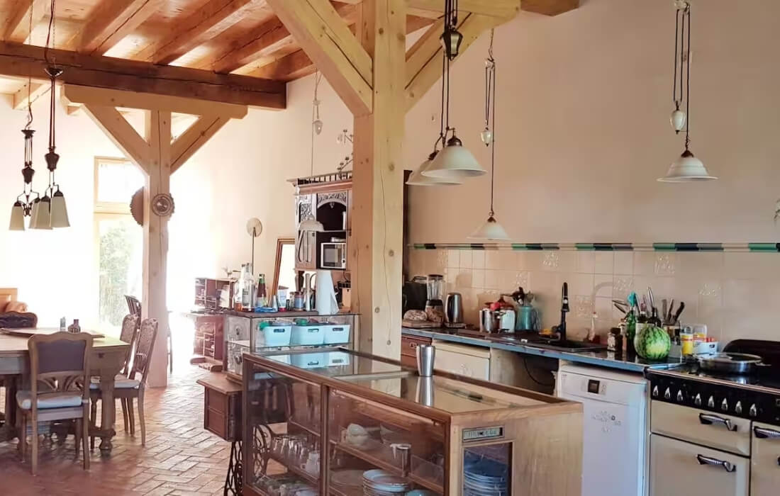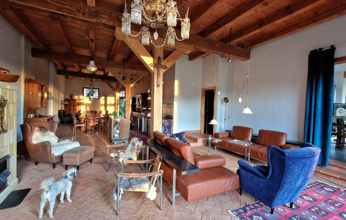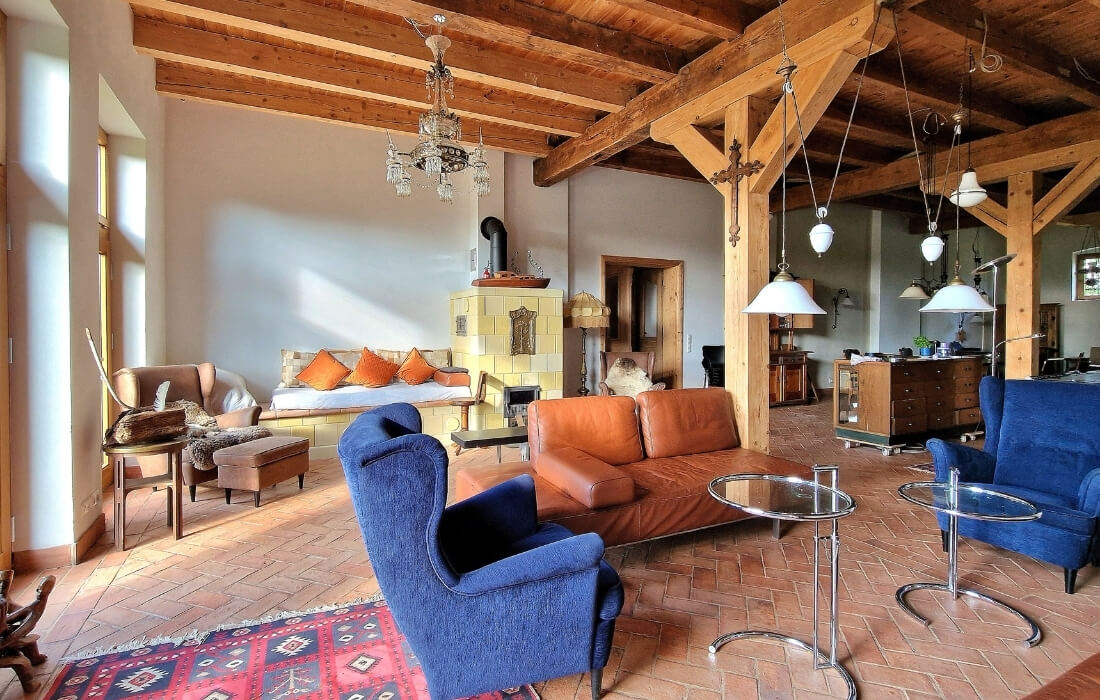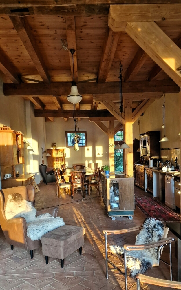 Große Wohnbereiche, gemütliche Sofazonen, lange Tafeln und hohe Decken – hier fällt das Ankommen leicht, gemeinsames Kochen, Spielen oder einfach Zusammensein ist mühelos möglich.