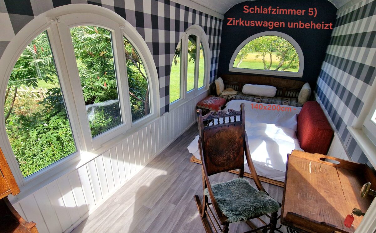 > Zusammenrücken im Winter: der unbeheizte Zirkuswagen wird z.B. durch die Ofenbank ersetzt.